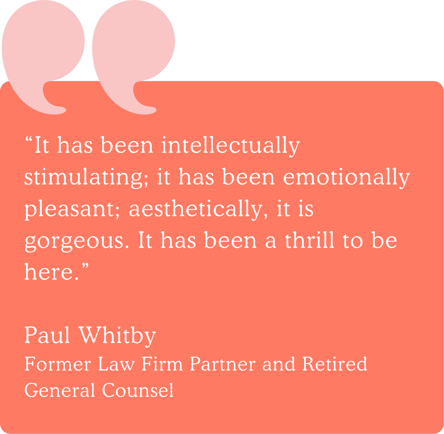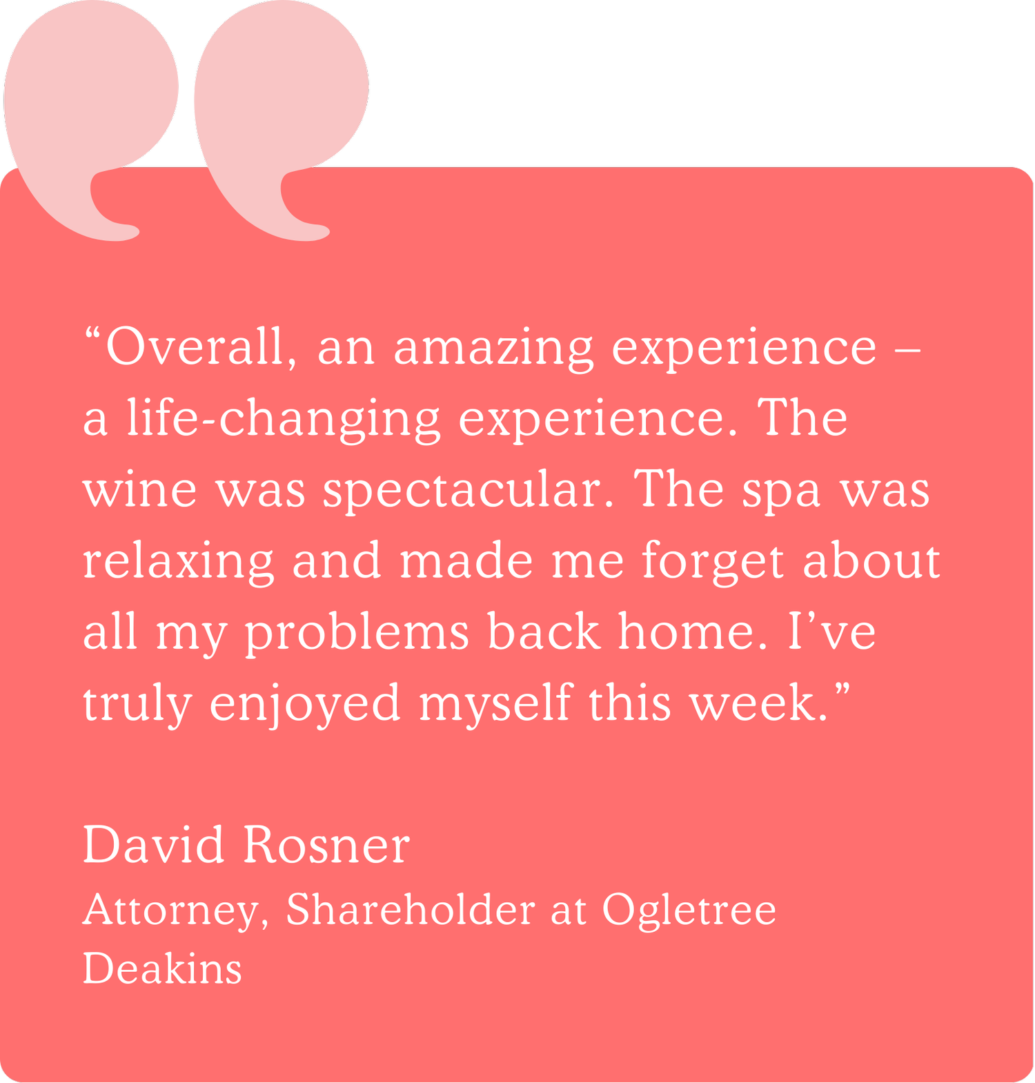 We created place and time where very high-achieving lawyers can relax, enjoy, connect, and learn. You'll gain the mindset to enhance your happiness for decades to come.