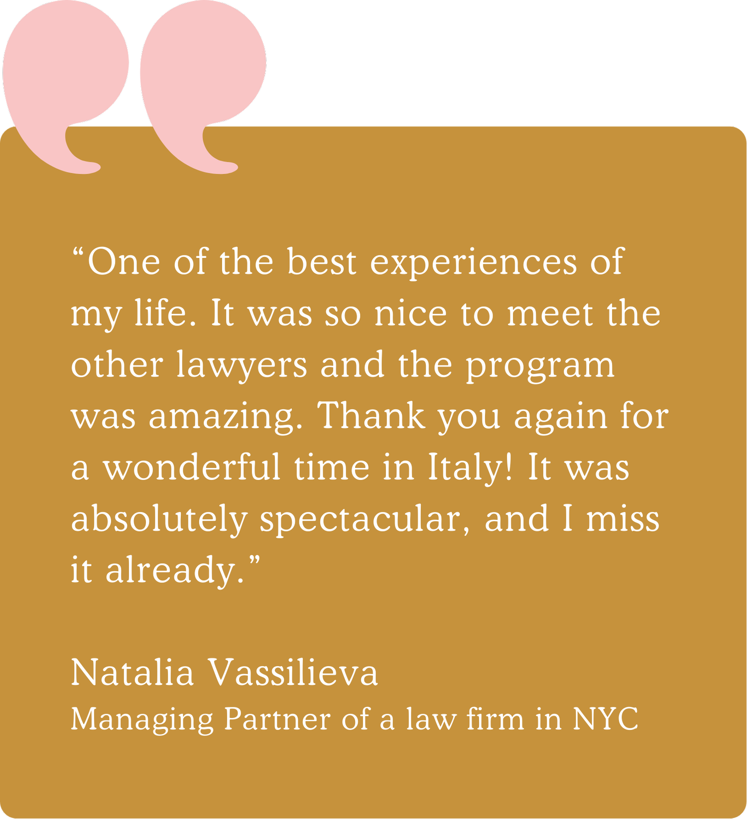 Get ready to enjoy each other’s company, reap the benefits of an authentic Italian experience, and learn to drive positive change in the legal profession.